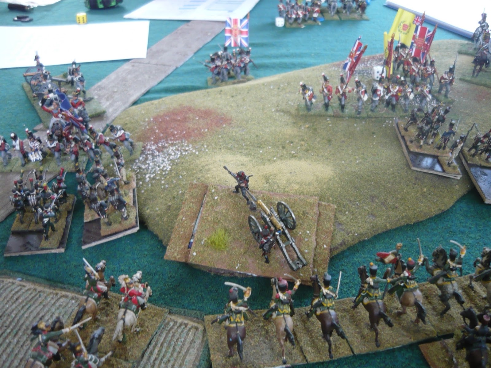 | The cavalry set off on their last charge. The British guns prepare to flank my dragoons at the top of the picture. |